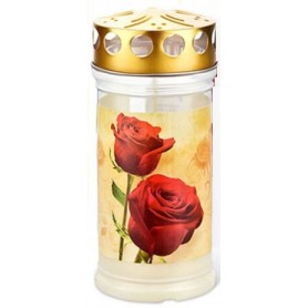 Motiv: "Rose" Brenndauer: ca. 4 Tage Becherfarbe: weißÖlgehalt: 30 % Regenfester Deckel: Mit integrierten Ablaufrinnen im Deckel.